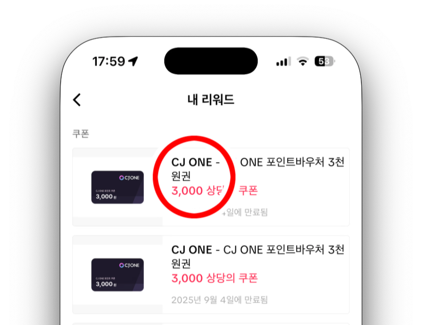틱톡에서 받은 CJ ONE 포인트바우처 3천원권 등록하는 방법 본문